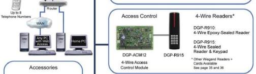 - 可通过模块扩展连接32个门禁读卡器,并用卡片或者指纹布/撤防