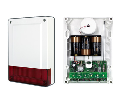 兼容MG系列和SP系列报警主机内置无线收发器,可接收发送控制信号和接收报警主机的状态信息,是双向遥控器带频闪灯的响声达到100分贝的无线警号 全天侯防紫外线PC保护和有机硅涂层板ABS外壳能在-20 ° C至50℃的环境下正常使用 只用电池,也可外接电源4秒的高速响应时间长大2.5小时的报警后报警灯闪动提示报警主机时刻对无线警号进行监督,如果警号没有收到报警主机的信号,则每四秒闪动一次,并发出5分钟警号声三重放拆保护:墙离开防拆、外壳防拆、螺丝防拆一个报警主机可以带4个无线警号4 LED信号强度和状态显示多种闪灯外壳颜色可挑选:红、蓝、黄、灰 技术指标