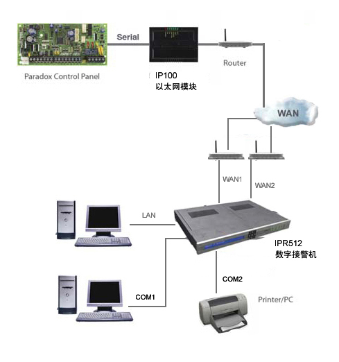 |首页 > 防盗器材 >PARADOX> 巧妙利用以太网进行集中管理的防盗方案